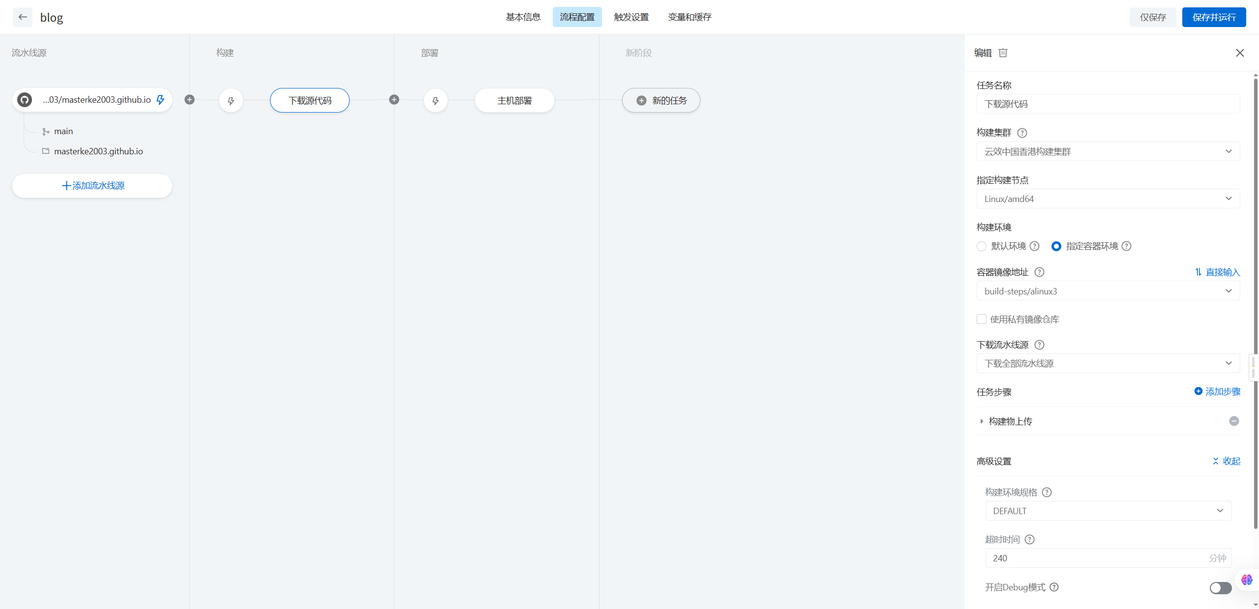 我的博客都是在新增文章后自动部署的,由于之前是借助Jenkins,最主要的是这个Jenkins是部署在其他朋友的服务器上的,服务器最近要到期了,就急需一个新的解决方案,看到阿里云的CICD平台还不错,并且对个人开发者也有一定的免费额度,个人使用应该是够了的。