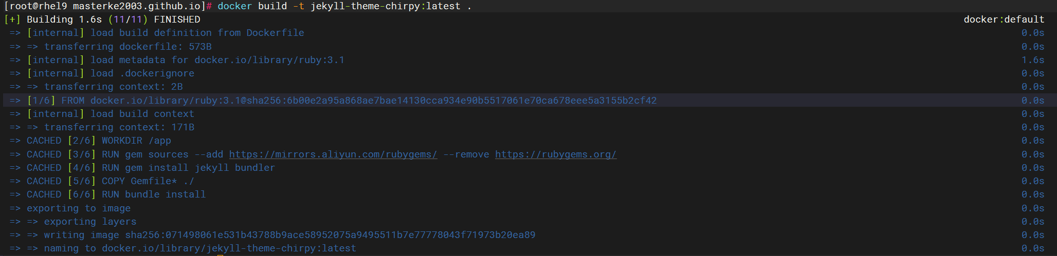 搞定🤝发布在这里:https://hub.docker.com/repository/docker/masterke2003/jekyll-theme-chirpy/general